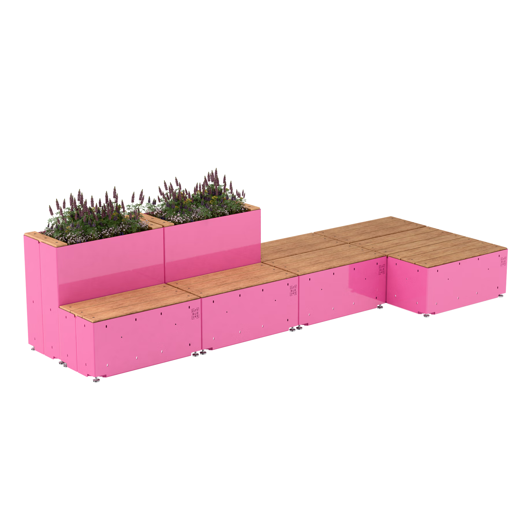 Easily add a standout looking seating system anywhere to your spaces with our Pocket Block Pixel configuration, giving you the freedom to have extended, multiple pops of colour or single, standalone pieces. This configuration is a perfect compliment to any public seating area – connect multiple and pair with other shapes using rectangles and squares for a pixelated dreamland in your plaza or park.