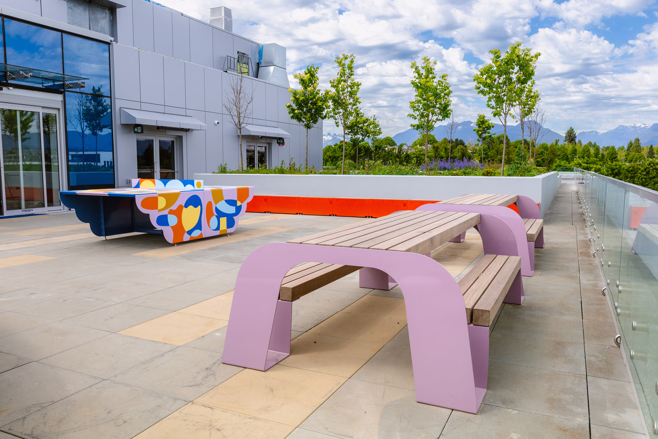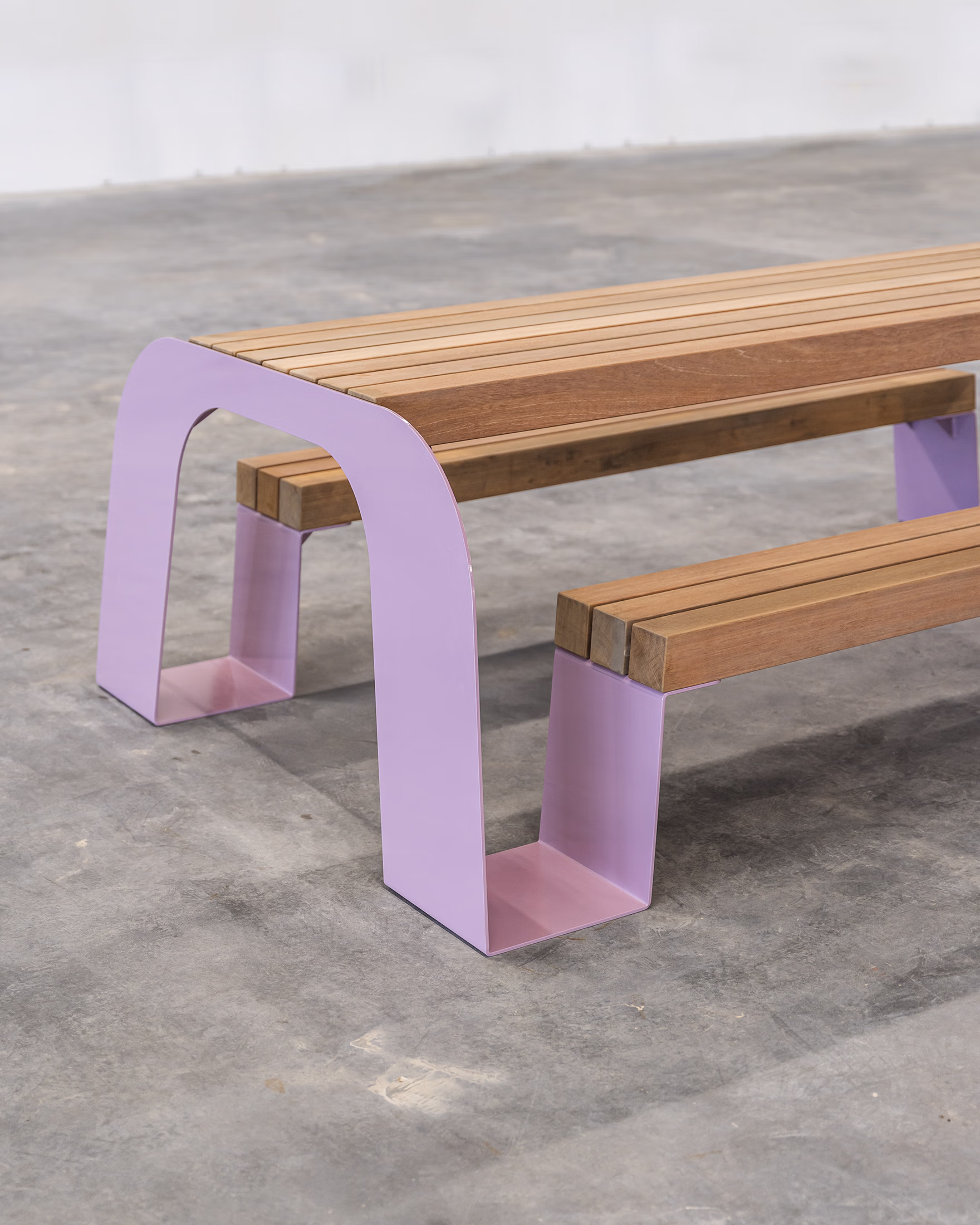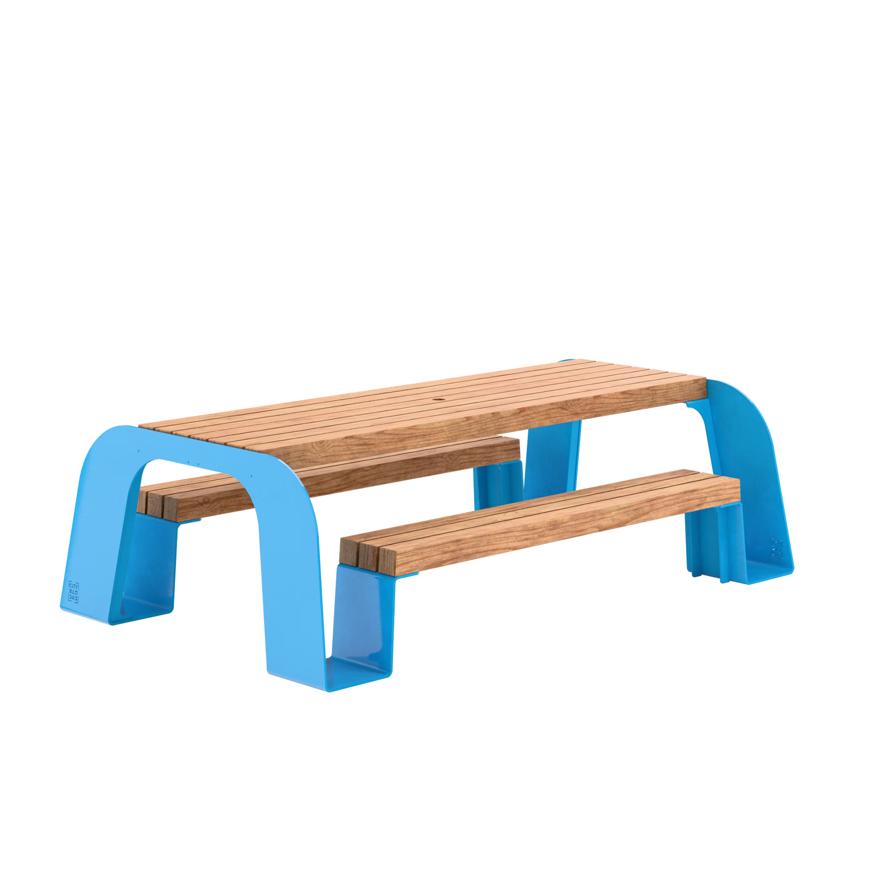 With sturdy wood blocks for the table and benches, the Arch table is designed to last and become a magnet for social connection in any public space for years to come after its installation. At City Blocks our guiding principle is to build urban space for all in our cities and public spaces. Our public spaces should be inclusive, inviting, functional and fun. Arch's flowing shape allows for wheelchair accesibiltiy on both ends and is designed to host groups of people in outdoor settings, adding a pop of colour to any public space.
