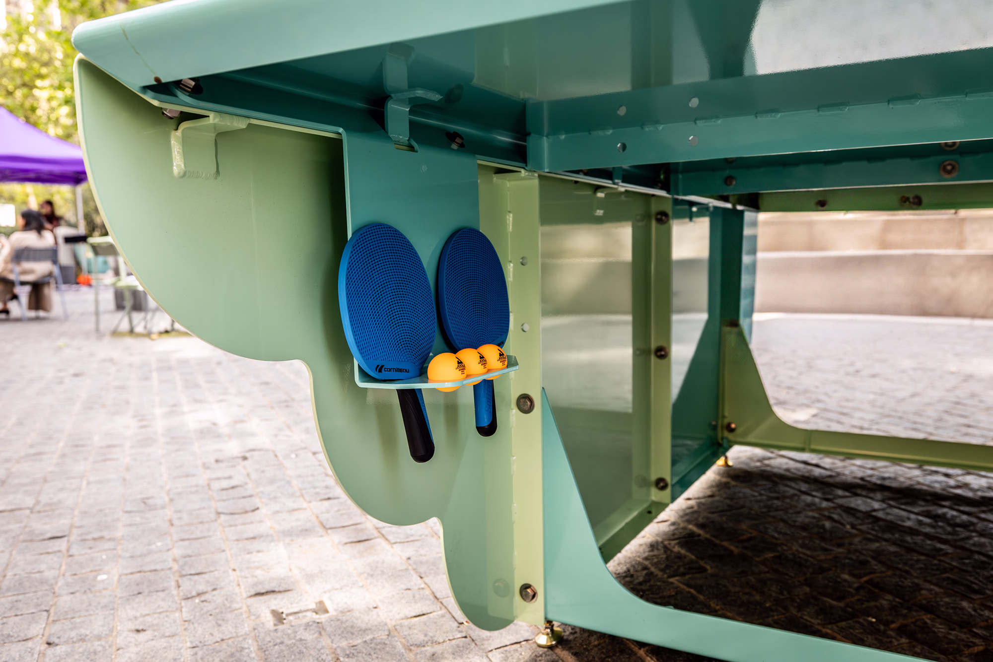 Whiff Waff, Ping-Pong or Flim-Flam. No matter what you call it, City Pong brings the fun to a place!! With an inspired Art-Deco style, City Pong is designed to make a statement in your public space. With custom paint and graphic options available this is the must have item for placemakers to make any place Pop!