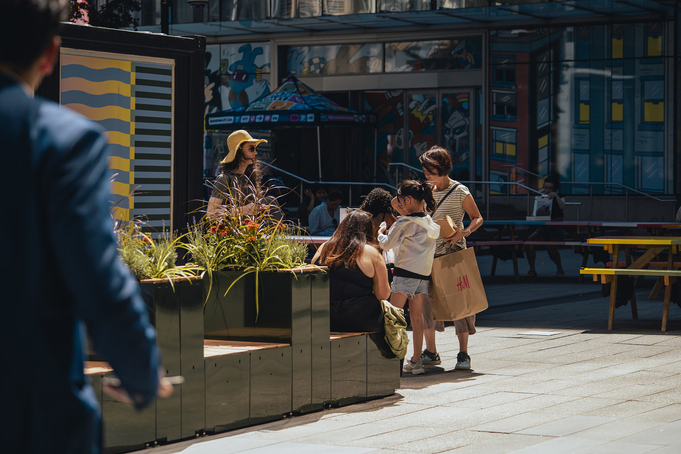 700 West Georgia Street Plaza was recently a vacant area after a major retailer abruptly exited its lease, leaving the space without its usual volume of activity. Our client sought solutions for the void left in what was once a thriving space they needed a Meanwhile intervention. Our challenge was to reinvigorate the plaza for existing tenants and shoppers who had lost amenities due to the vacancy.