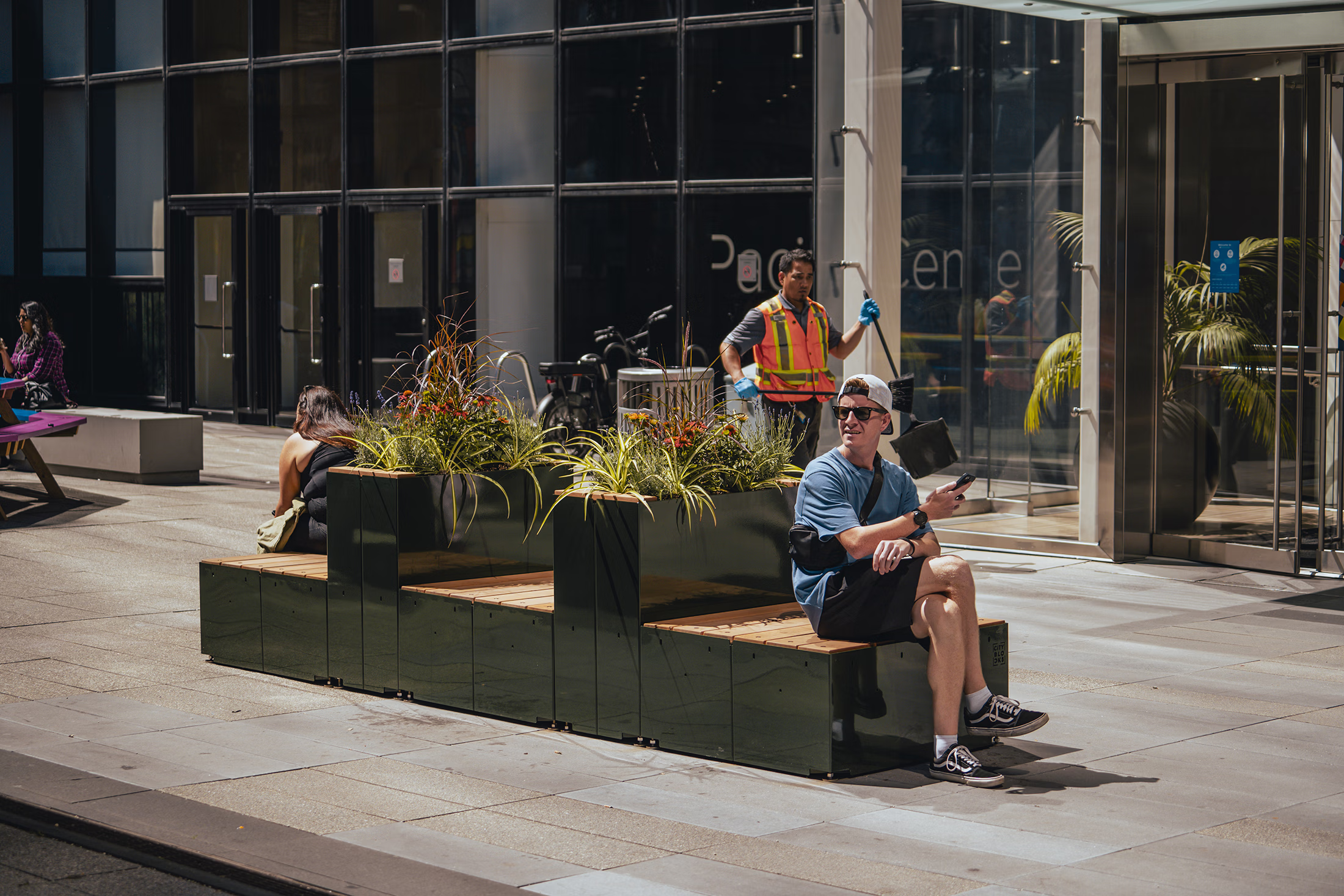 The pocket blocks merge sleek, customizable seating with integrated planters, with limitless configurations with the modular design, making the space adaptive, fun and flexible.