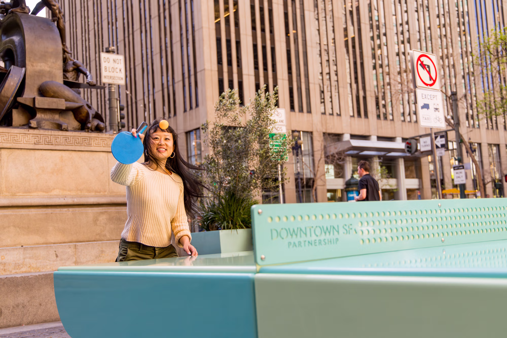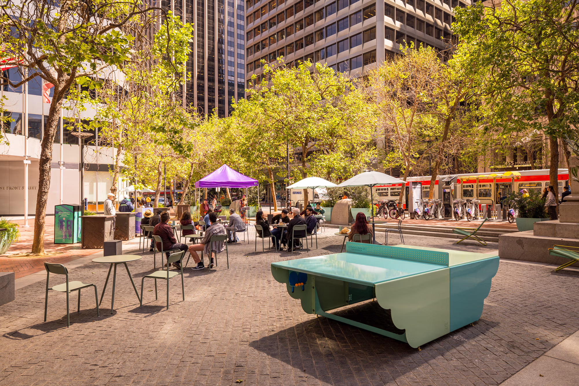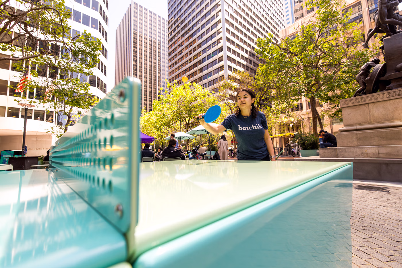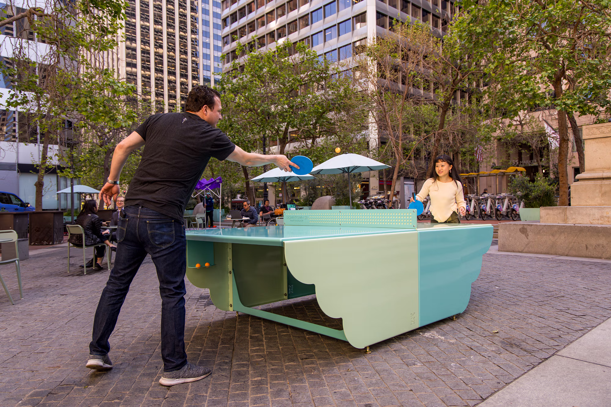The Downtown San Francisco Partnership wanted something more permanent that could make moments of play available to patrons all day, every day. The answer: Our art deco inspired City Pong table. It fit right in with the energy this revitalized plaza is bringing to the downtown core.
