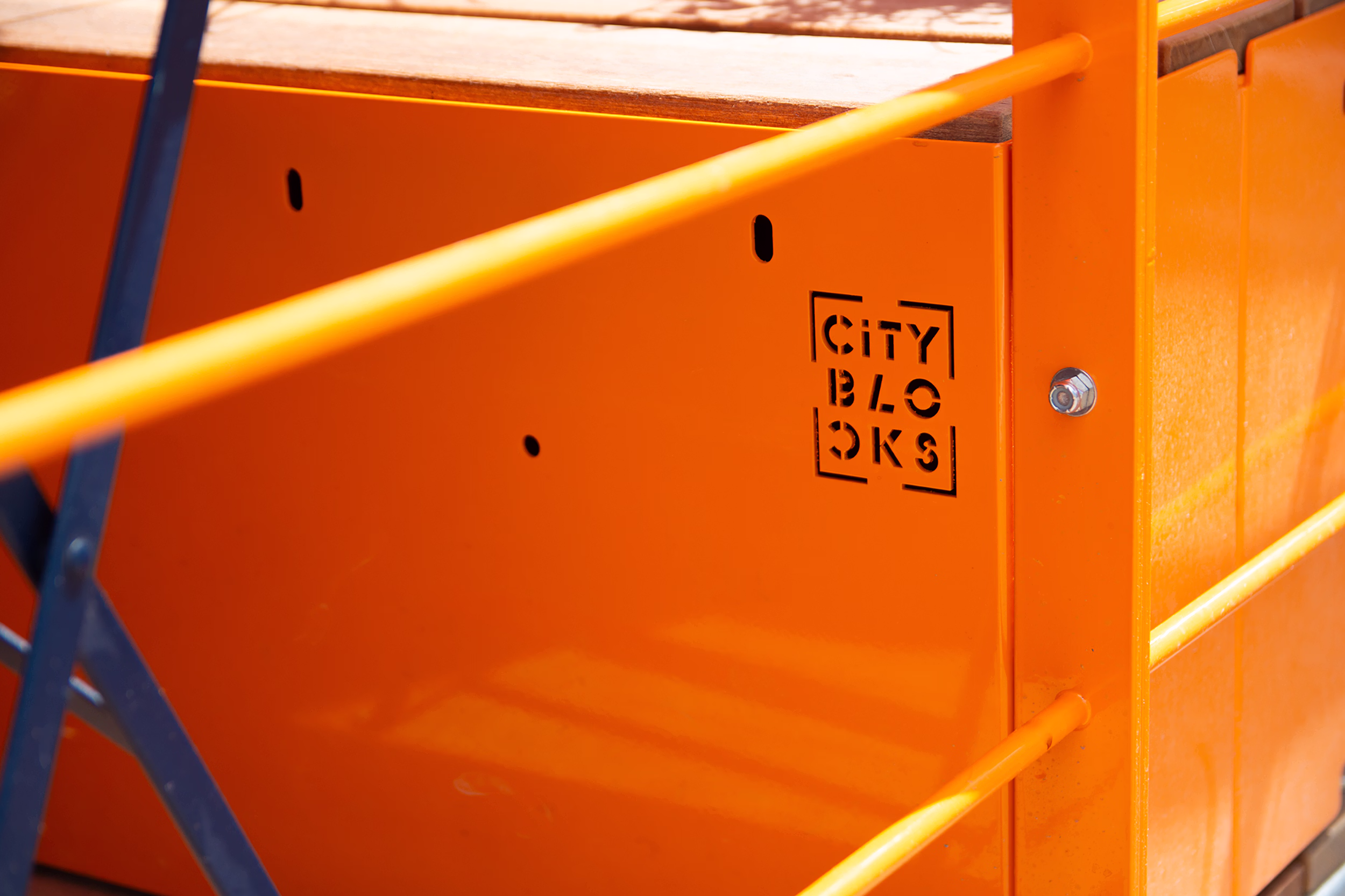 Hoop fence, Pocket Block Seats & Planters were all powder coated to match the City of Lethbridge's vibrant brand colour palette.
